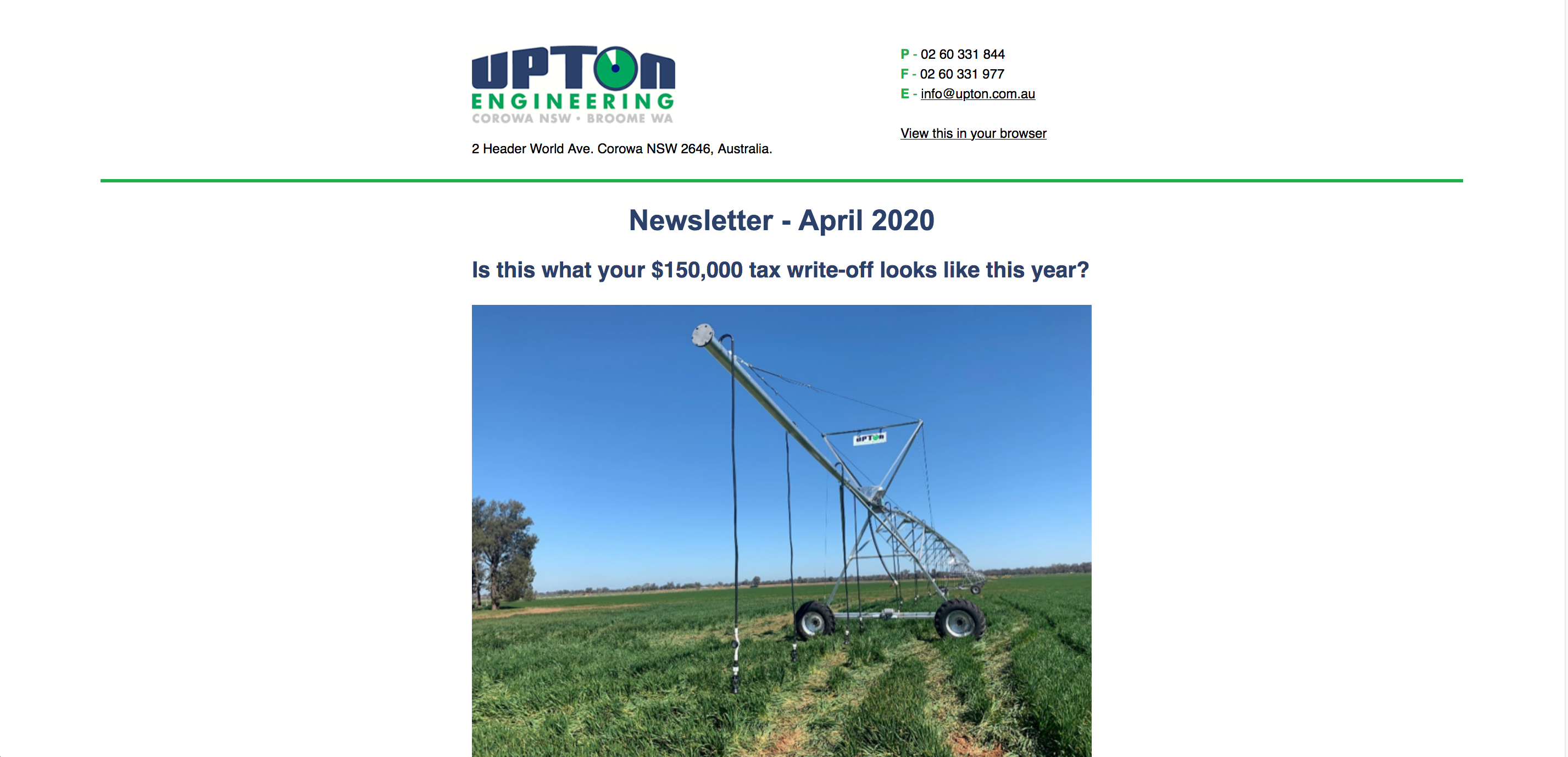 Call now to secure your new centre pivot irrigator- Glenn 0418 366 364, Gerry 0427 075 547 or Paul 0417 459 180.